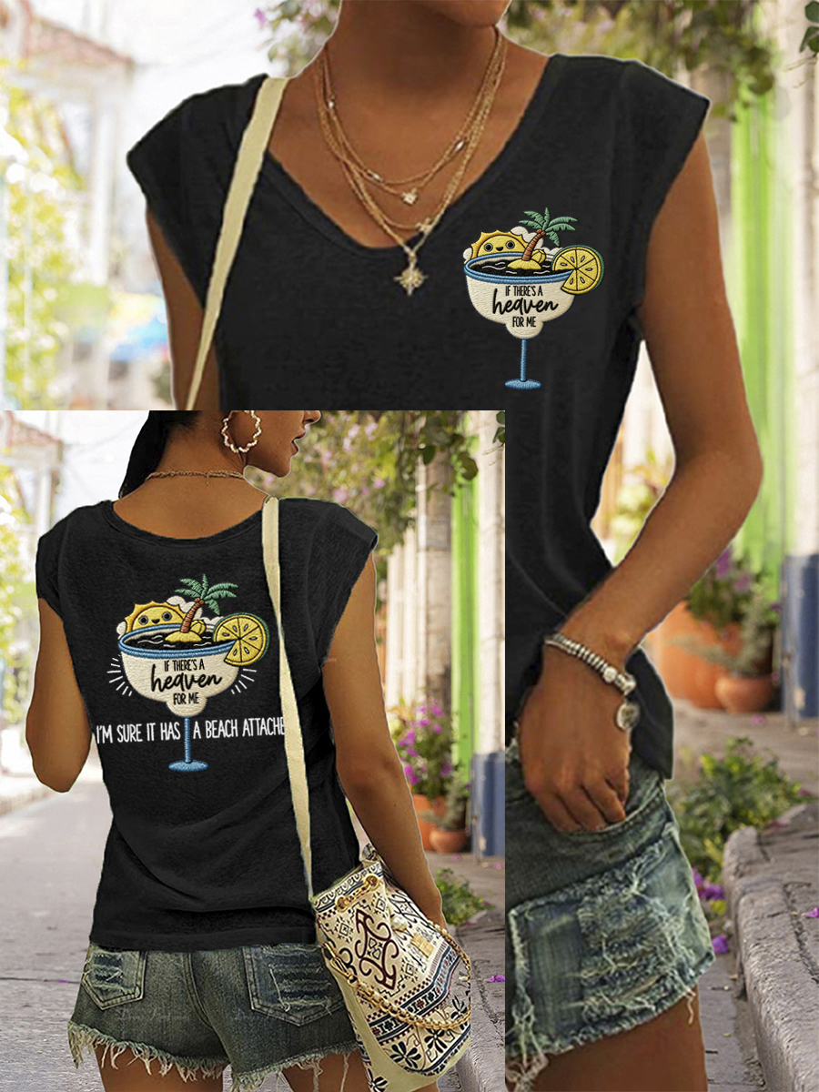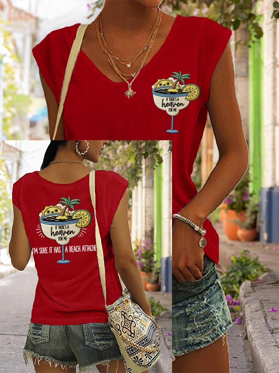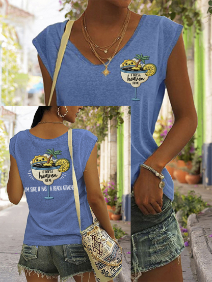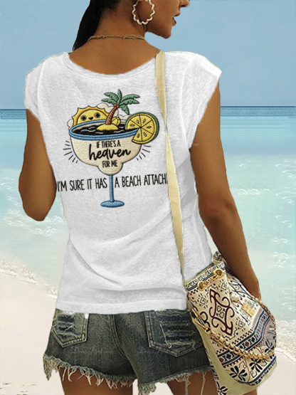 Women's If There's A Heaven For Me, I'm Sure It Has A Beach Attached Print Casual Sleeveless Tee