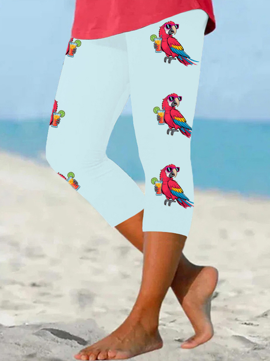 Women's It's 5 O'clock Somewhere Parrot Print Casual Cropped Leggings