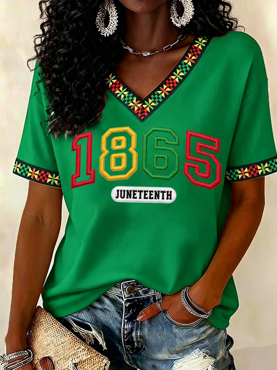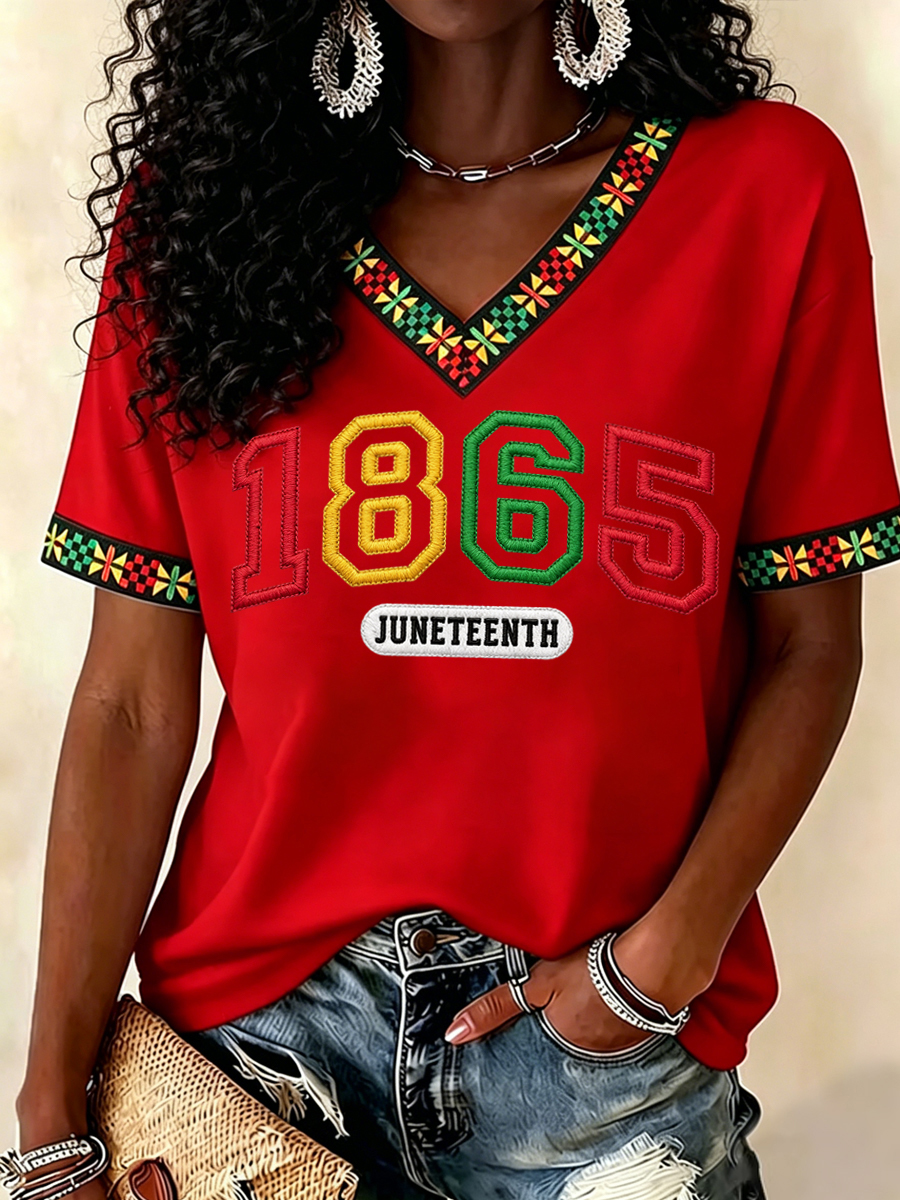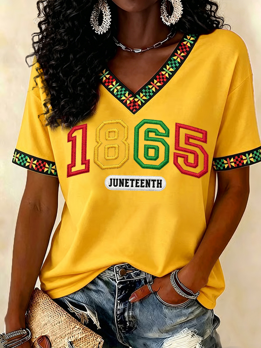 Women's Juneteenth 1865 Print Casual V-Neck Tee