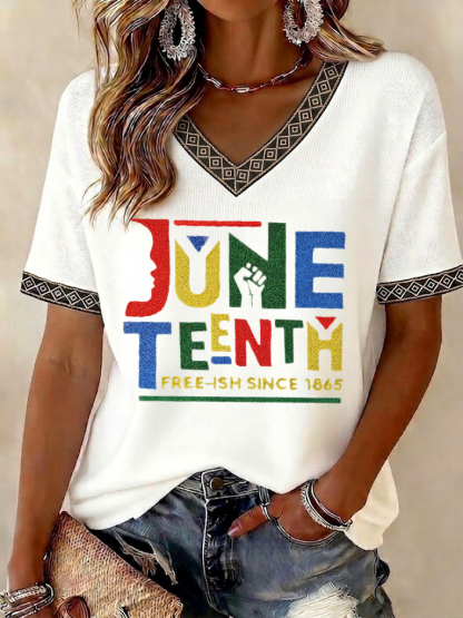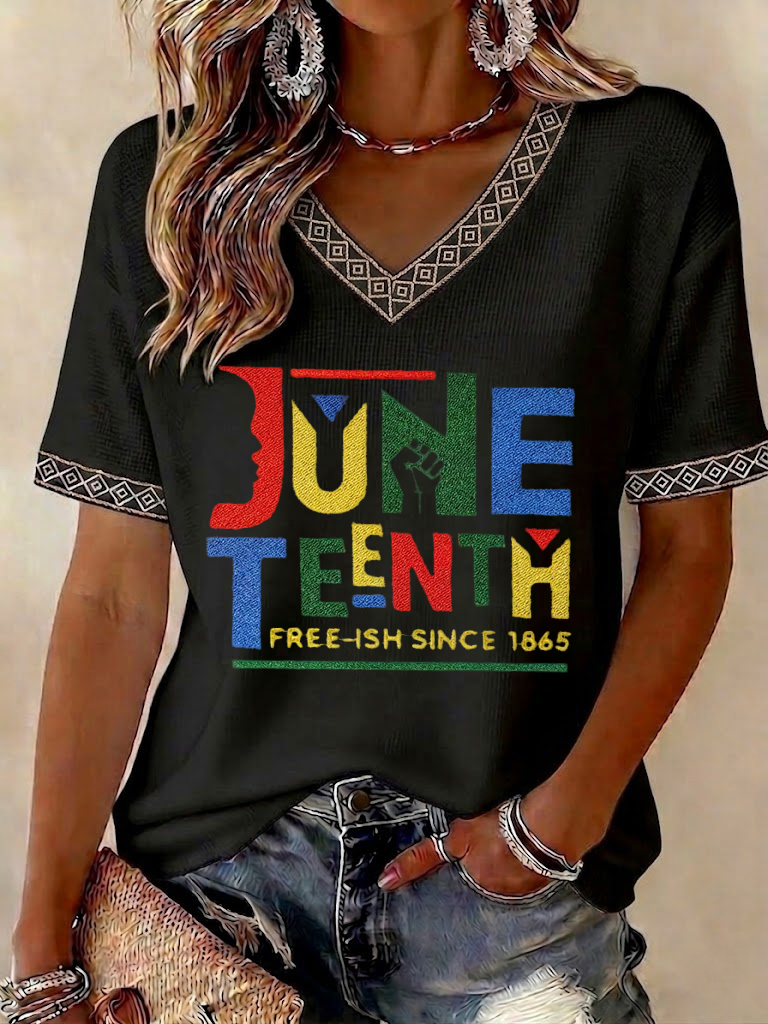 Women's Juneteenth 1865 Printed V-neck T-shirt