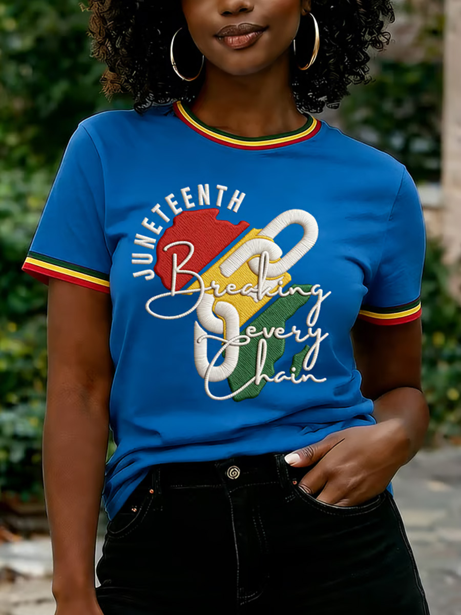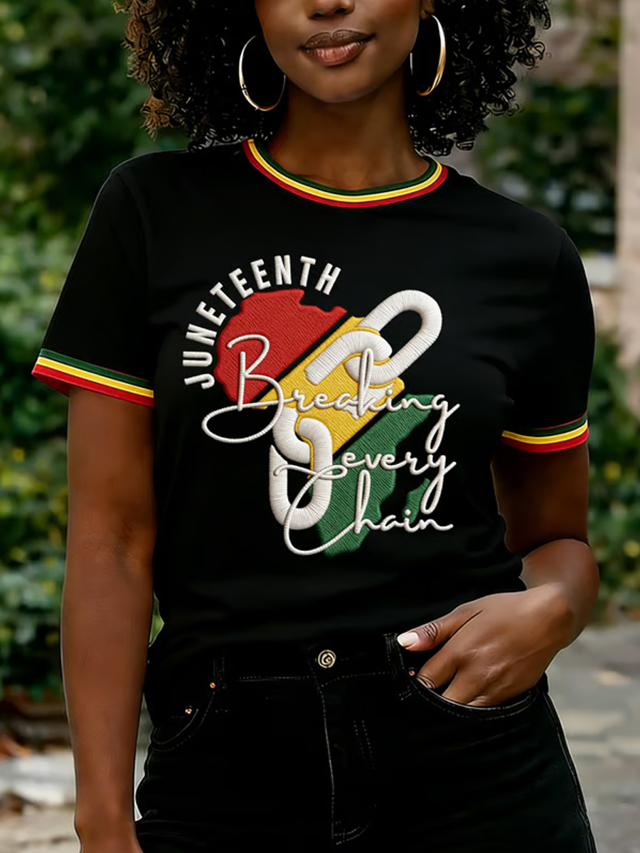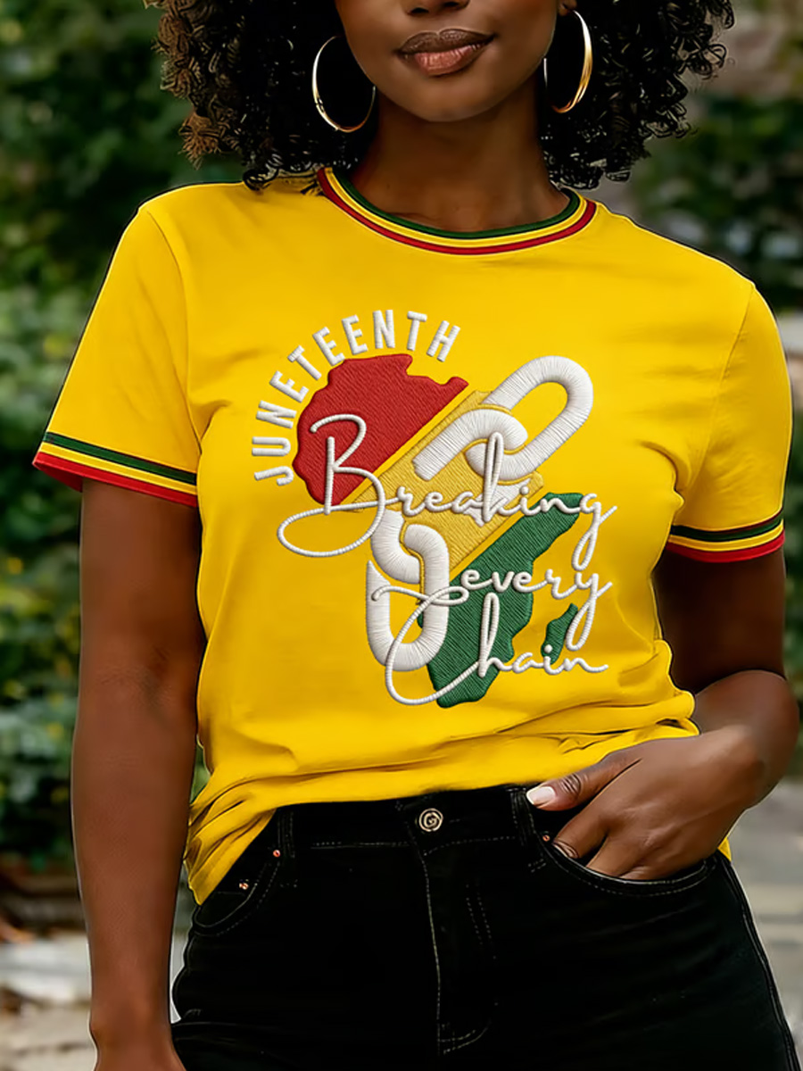 Women's Juneteenth Breaking Every Chain Print Casual Tee