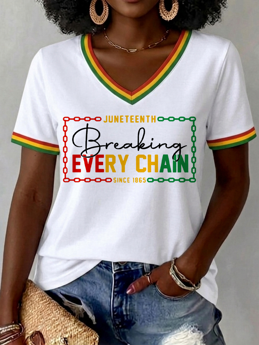 Women's Juneteenth Breaking Every Chain Since 1865 Print Casual V-Neck Tee