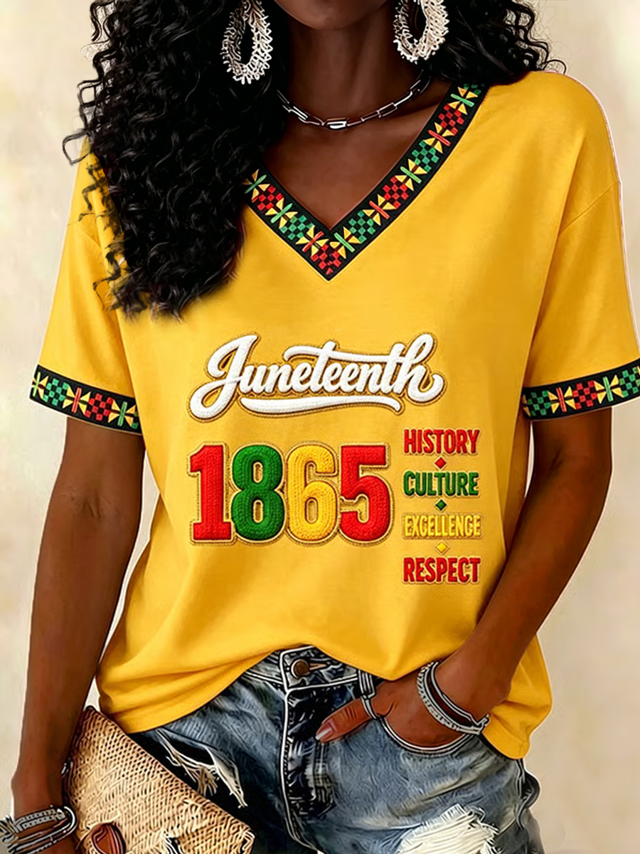 Women's Juneteenth Print Casual V-Neck Tee