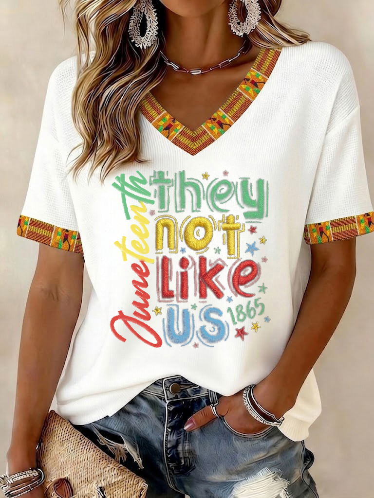 Women's Juneteenth They Not Like Us Printed V-neck T-shirt