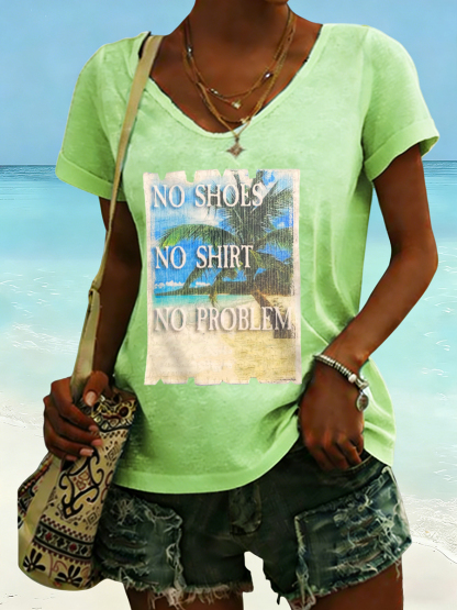 Women's No Shoes No Shirt No Problems Print V-neck T-shirt