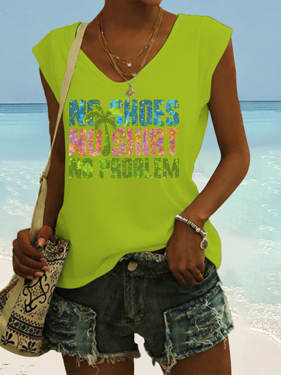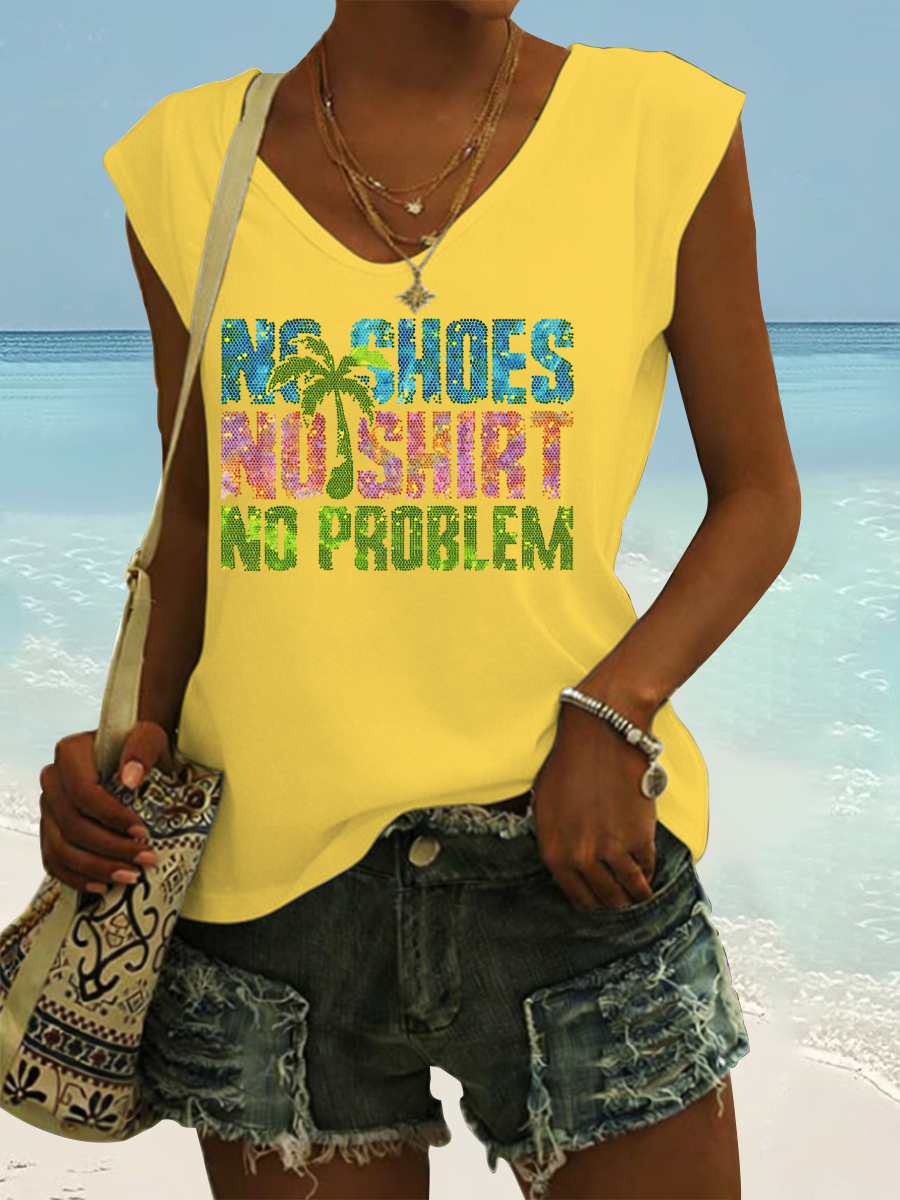 Women's No Shoes No Shirt No Problems Print Vest Top