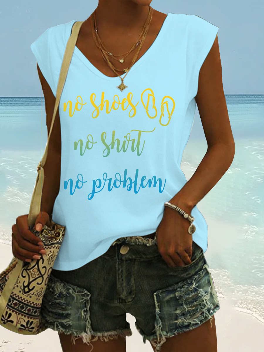 Women's No Shoes No Shirt No Problems Print Vest Top