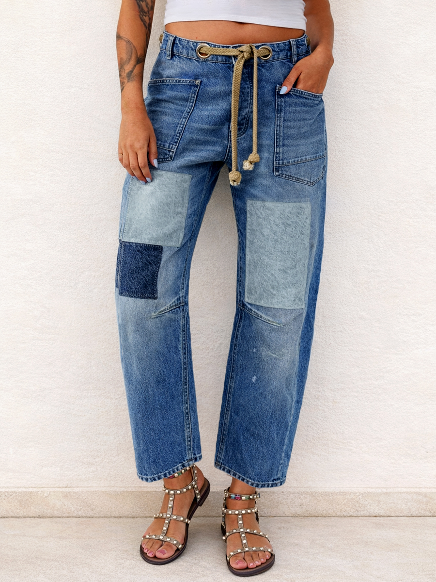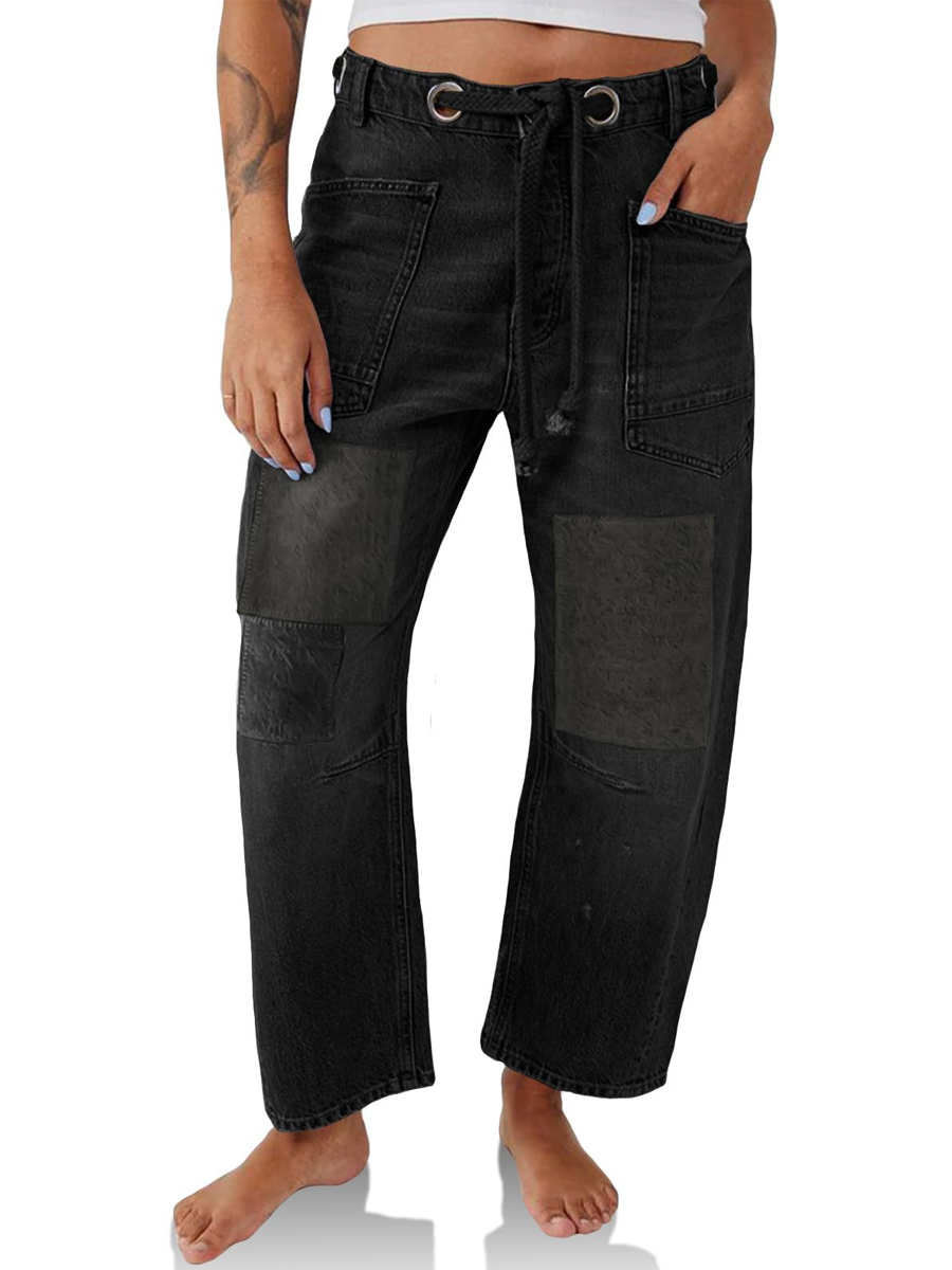Women's Patchwork Drawstring Jeans