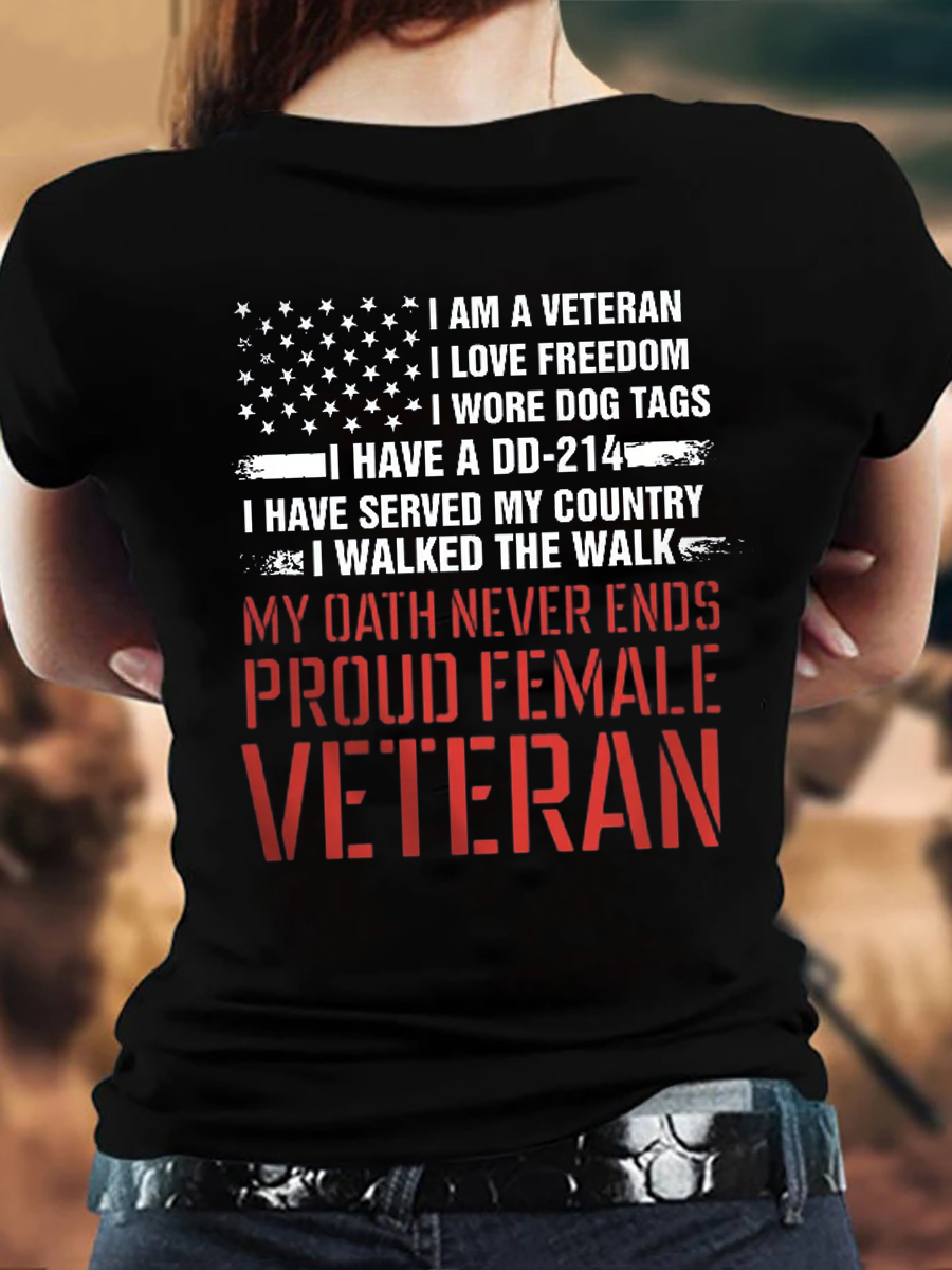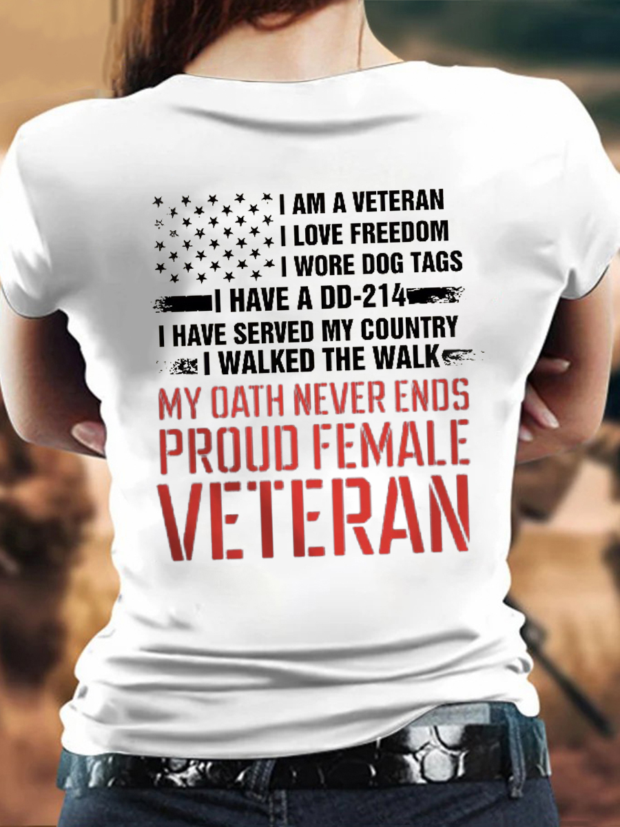 Women's Proud Female Veteran Print Round Neck T-shirt