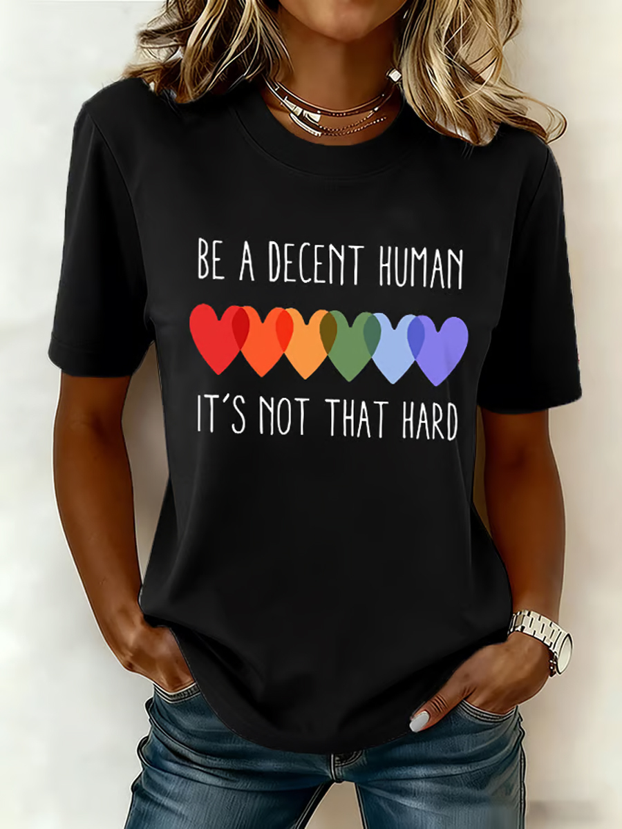 Women's Retro Be A Decent Human It's Not That Hard Print Short Sleeve T-Shirt
