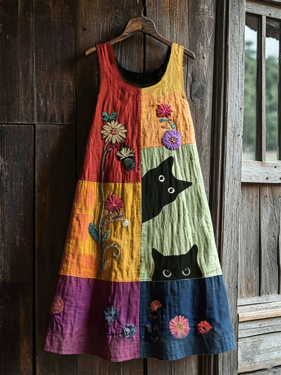 Women's Retro Floral Animal Sleeveless Midi Dress