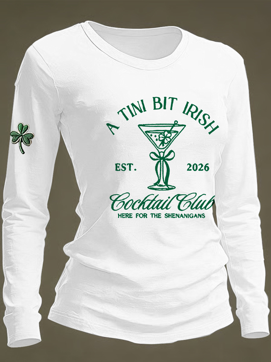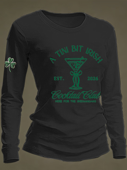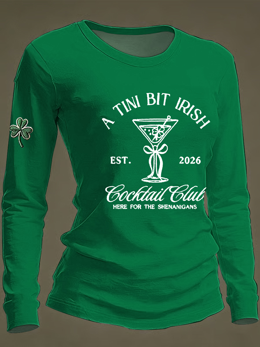 Women's St Patrick's Day A Tini Bit Irish Shamrock Long Sleeve T-shirt