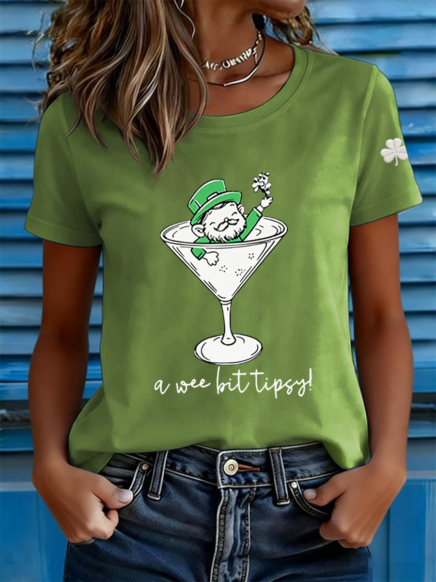 Women's St. Patrick's Day A Wee Bit Tipsy Shamrock Print Casual Tee