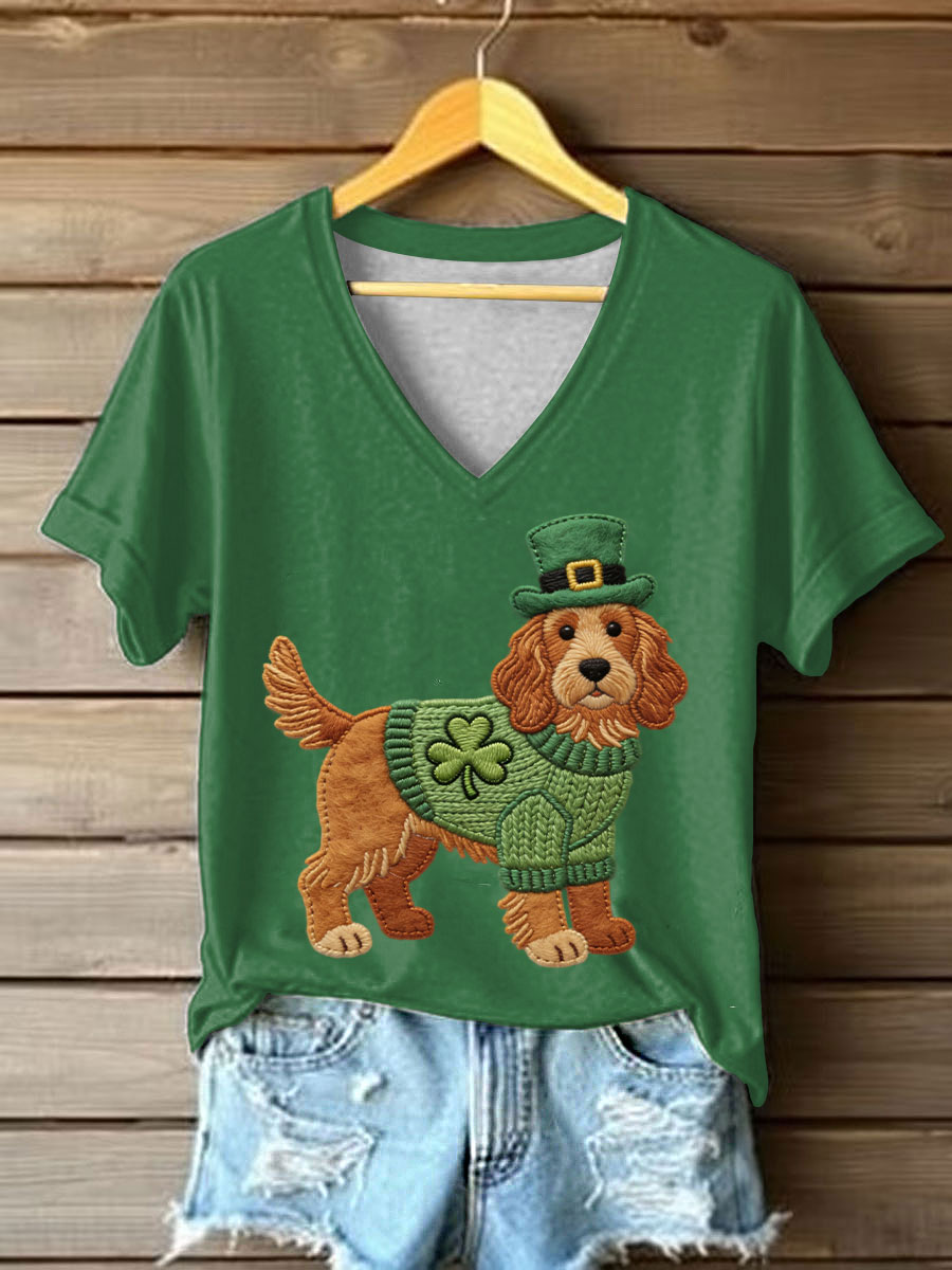 Women's St. Patrick's Day Dog Print Casual T-Shirt