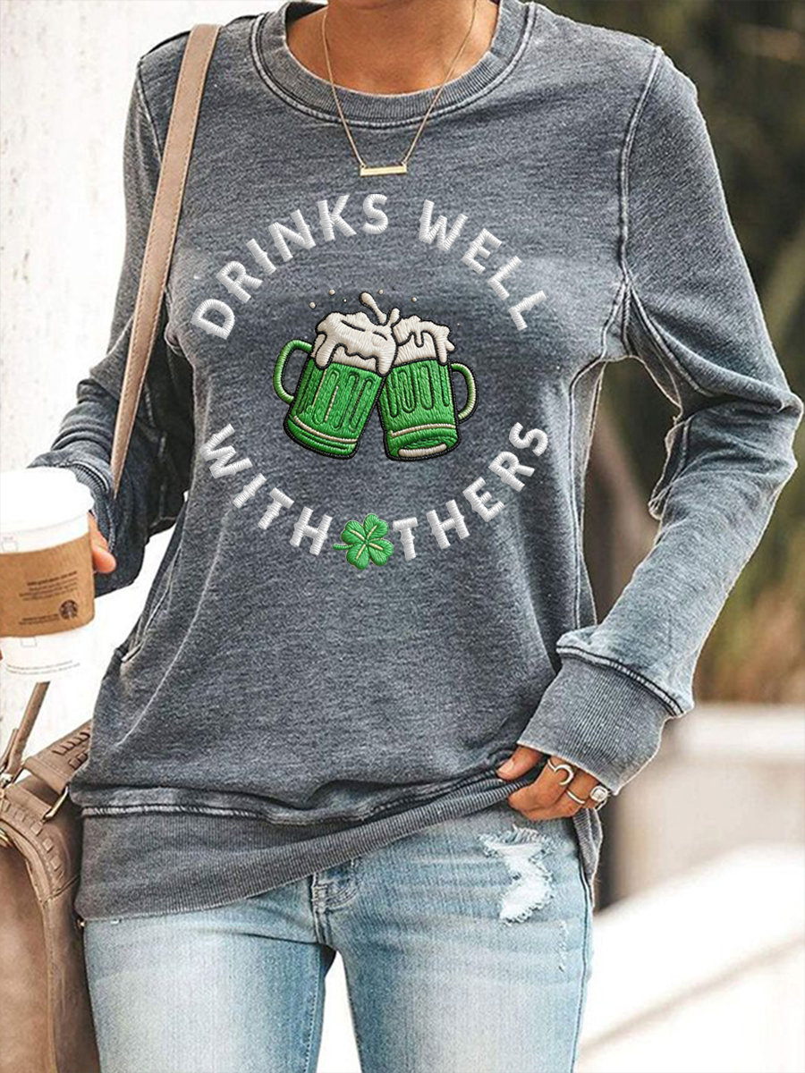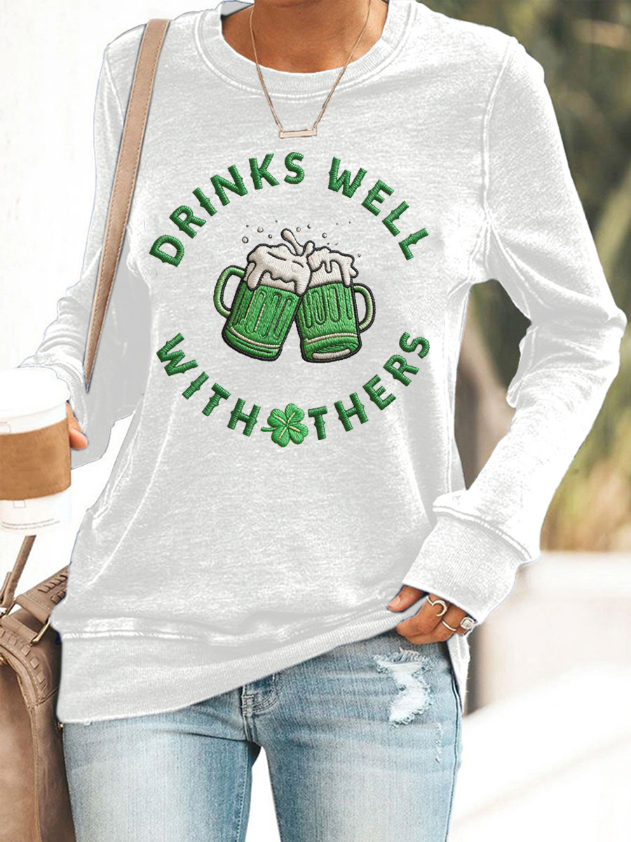 Women's St. Patrick's Day Drinks Well With Others Green Beer Print Casual Sweatshirt