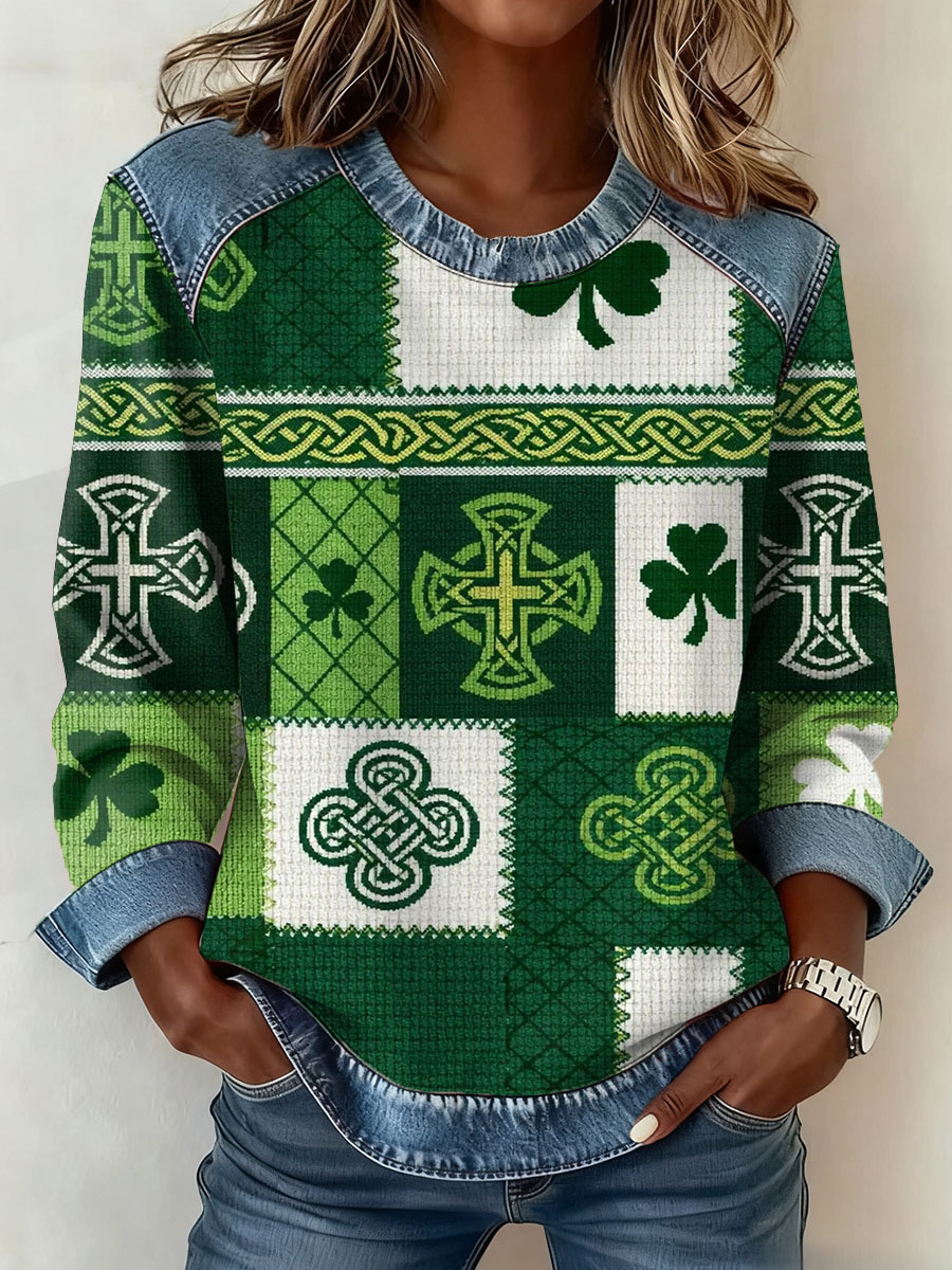 Women's St. Patrick's Day Pattern Patchwork Art Sweatshirt