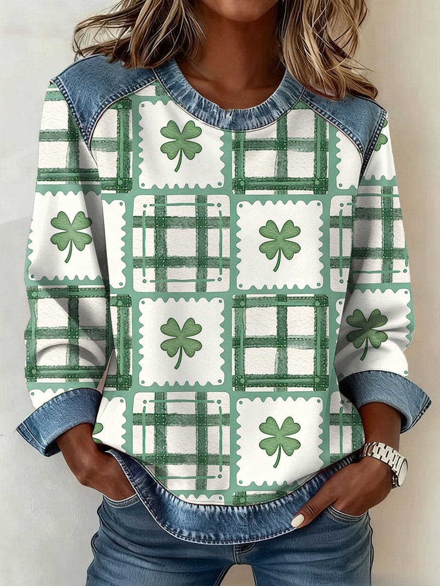 Women's St. Patrick's Day Pattern Patchwork Art Sweatshirt
