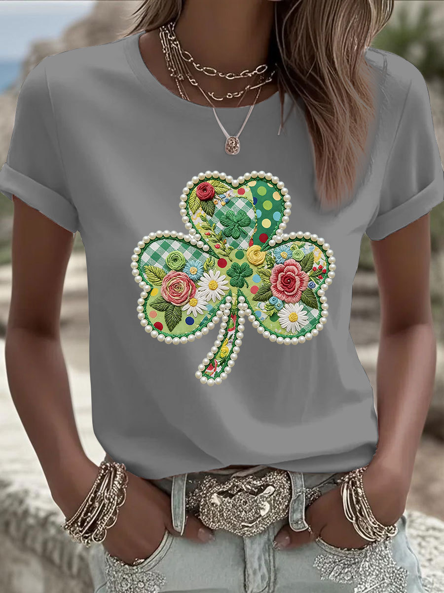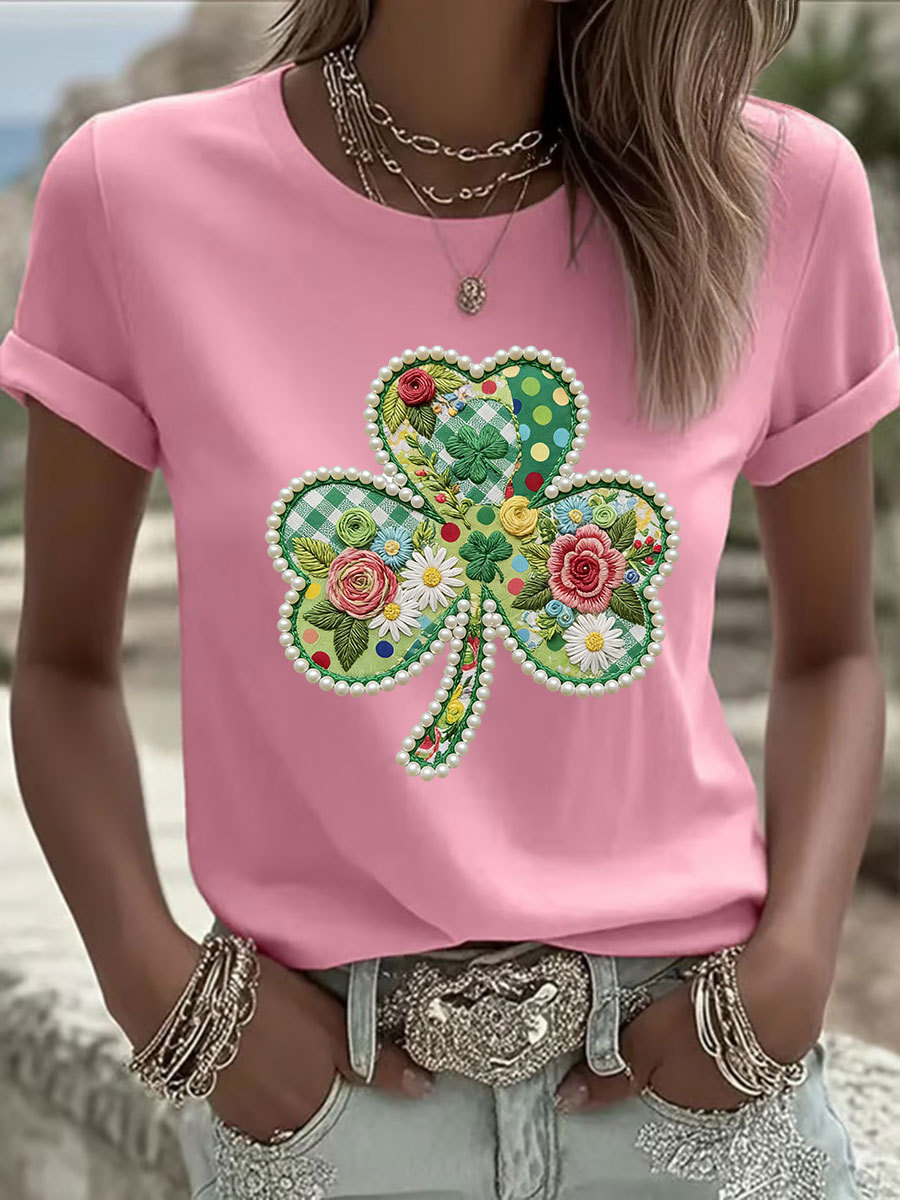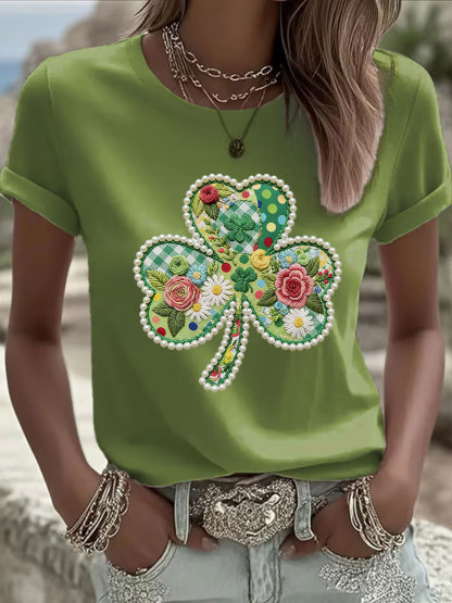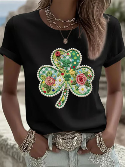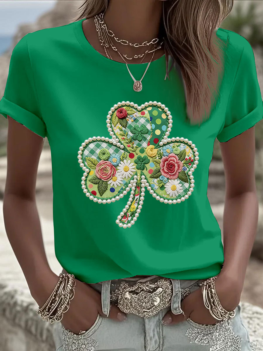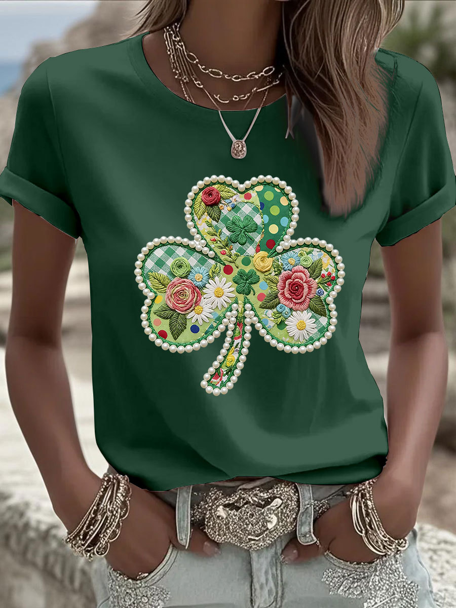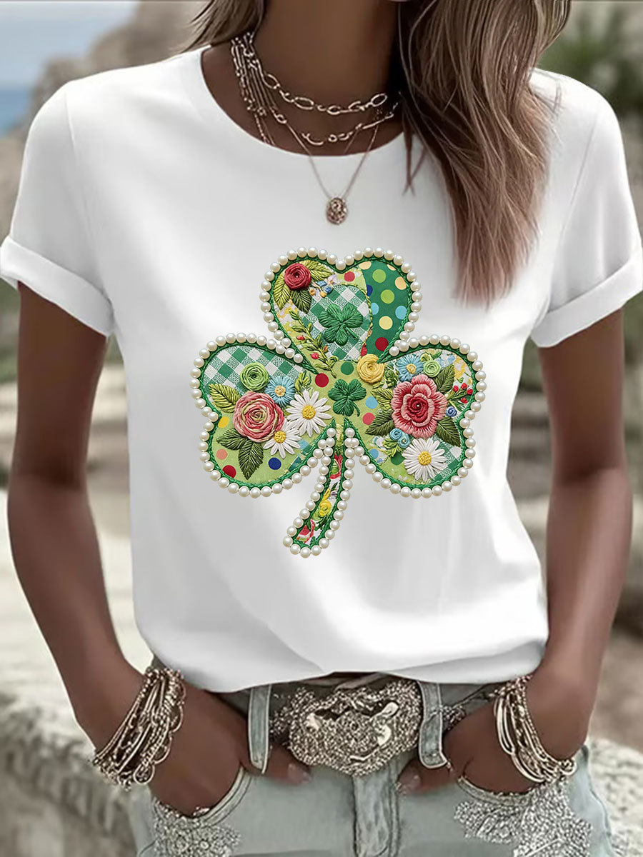 Women's St. Patrick's Day Pearl Shamrock Print Casual T-Shirt