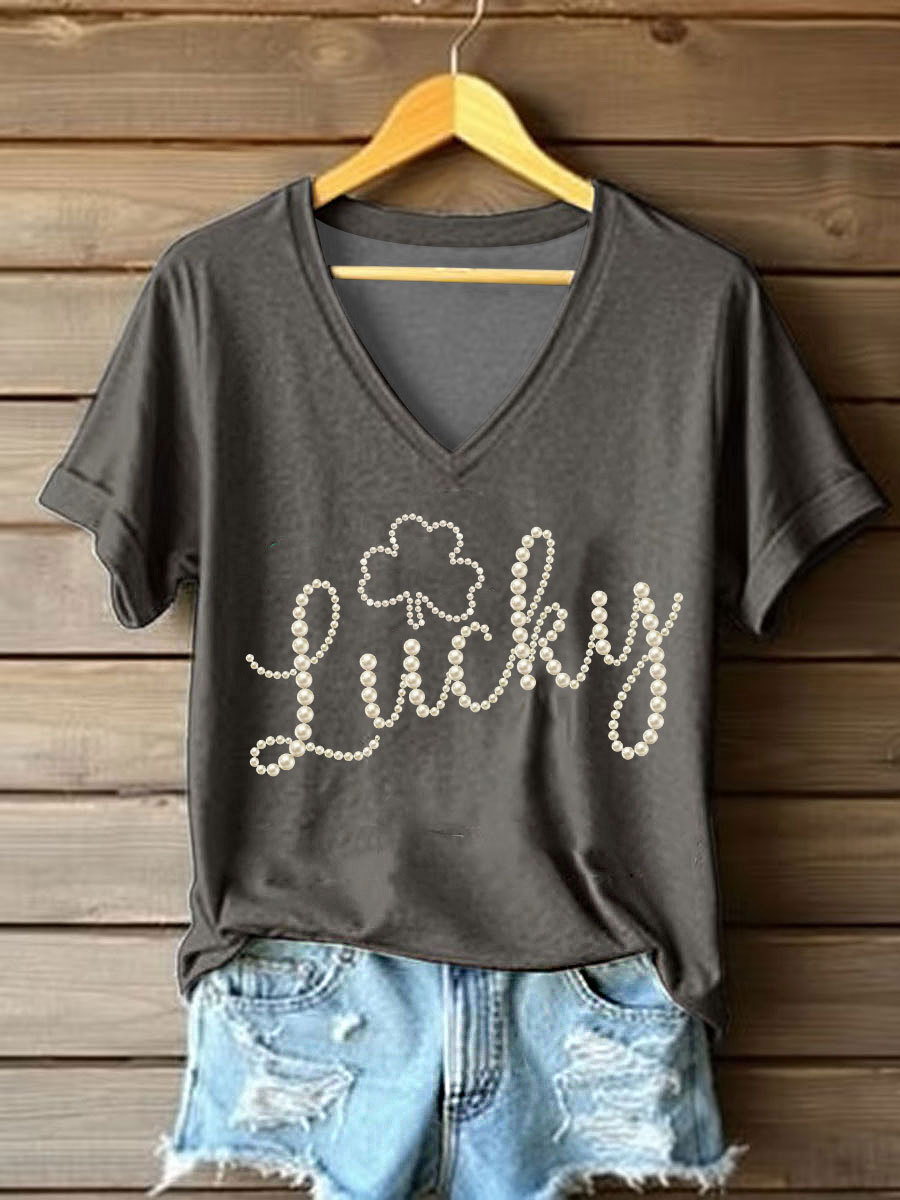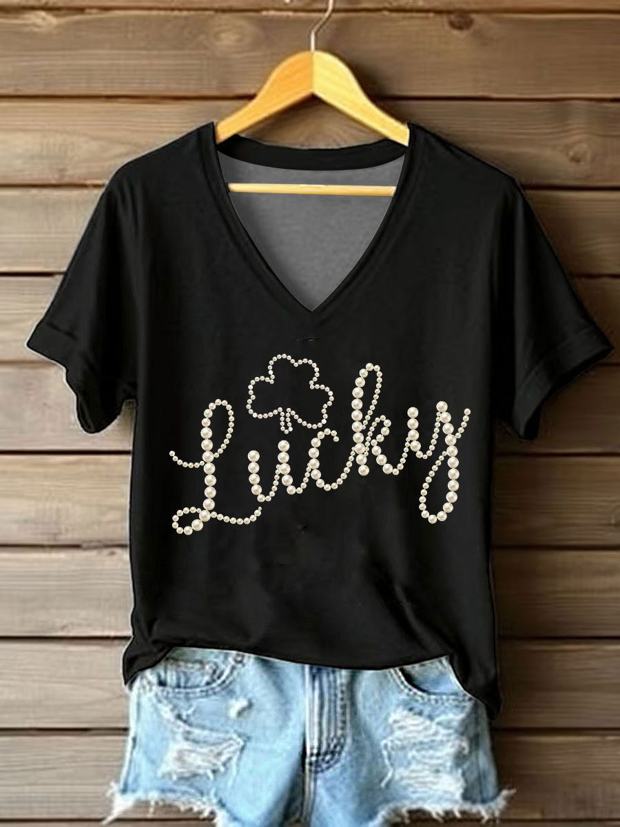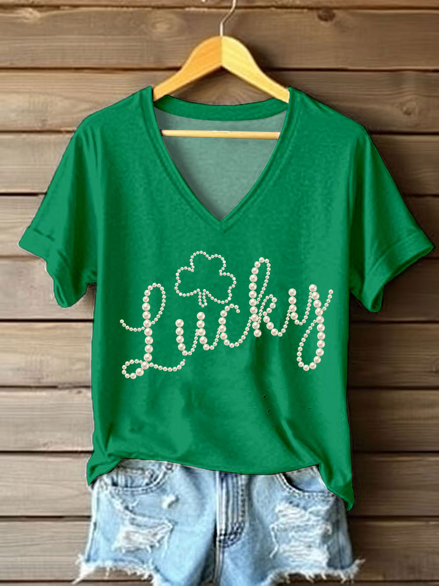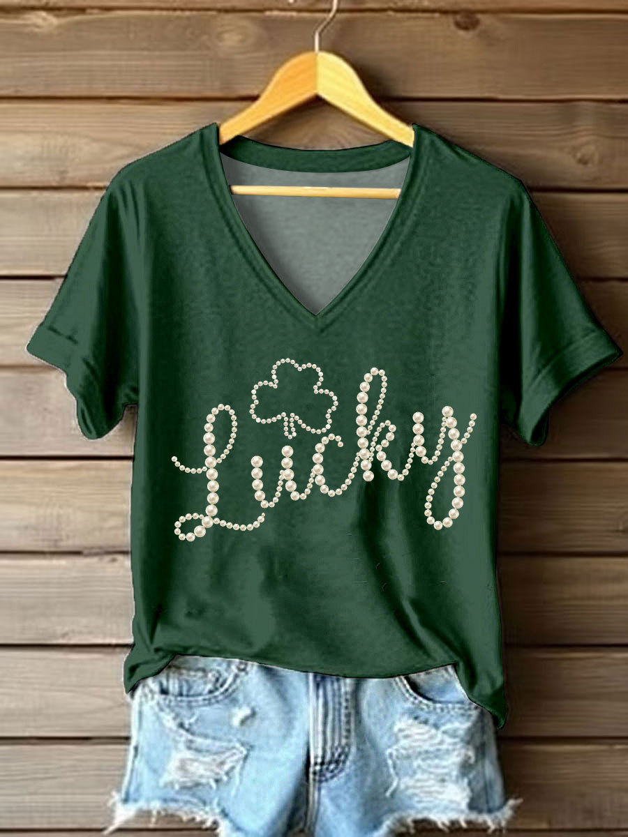 Women's St. Patrick's Day Pearl Shamrock Print Casual T-Shirt