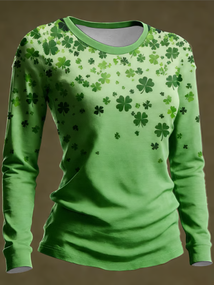 Women's St. Patrick's Day Print Round neck long sleeve T-shirt