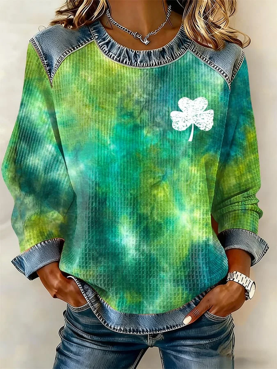 Women's St. Patrick's Day Print Waffle Sweatshirt