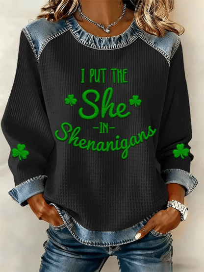 Women's St. Patrick's Day Print Waffle Sweatshirt