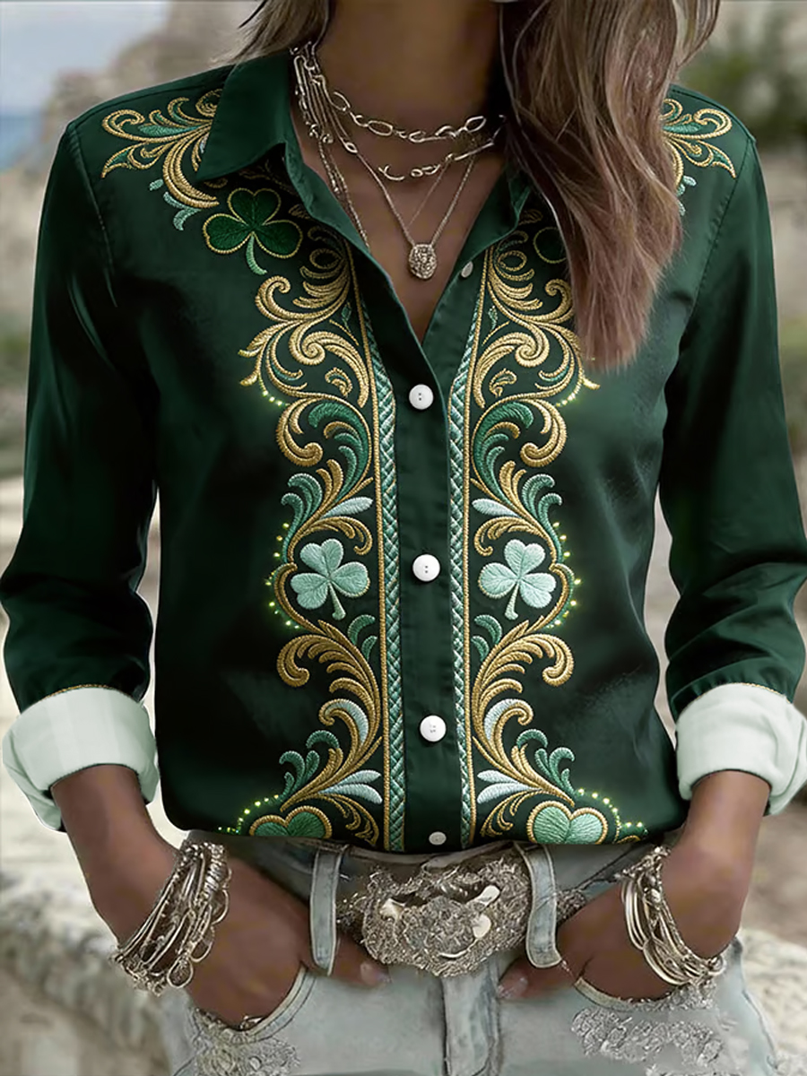 Women's St. Patrick's Day Shamrock Print Casual Long-Sleeve Shirt