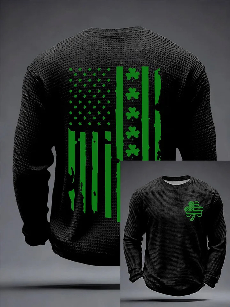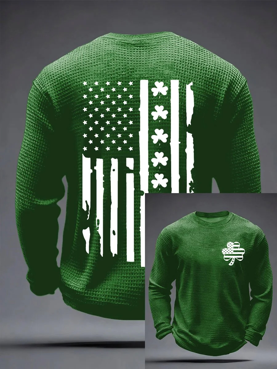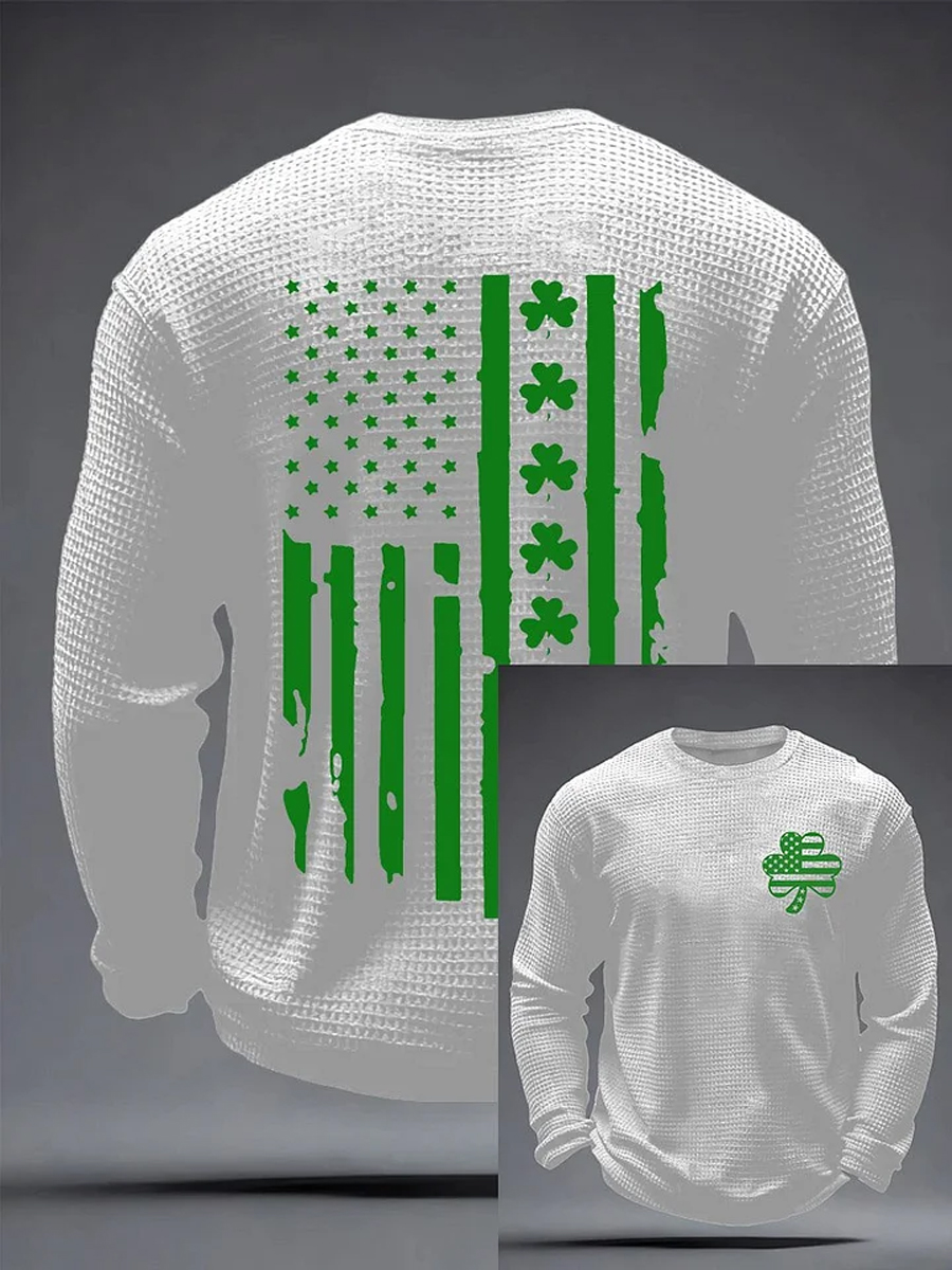 Women's St. Patrick's Day Shamrock Print Waffle Long Sleeve T-Shirt