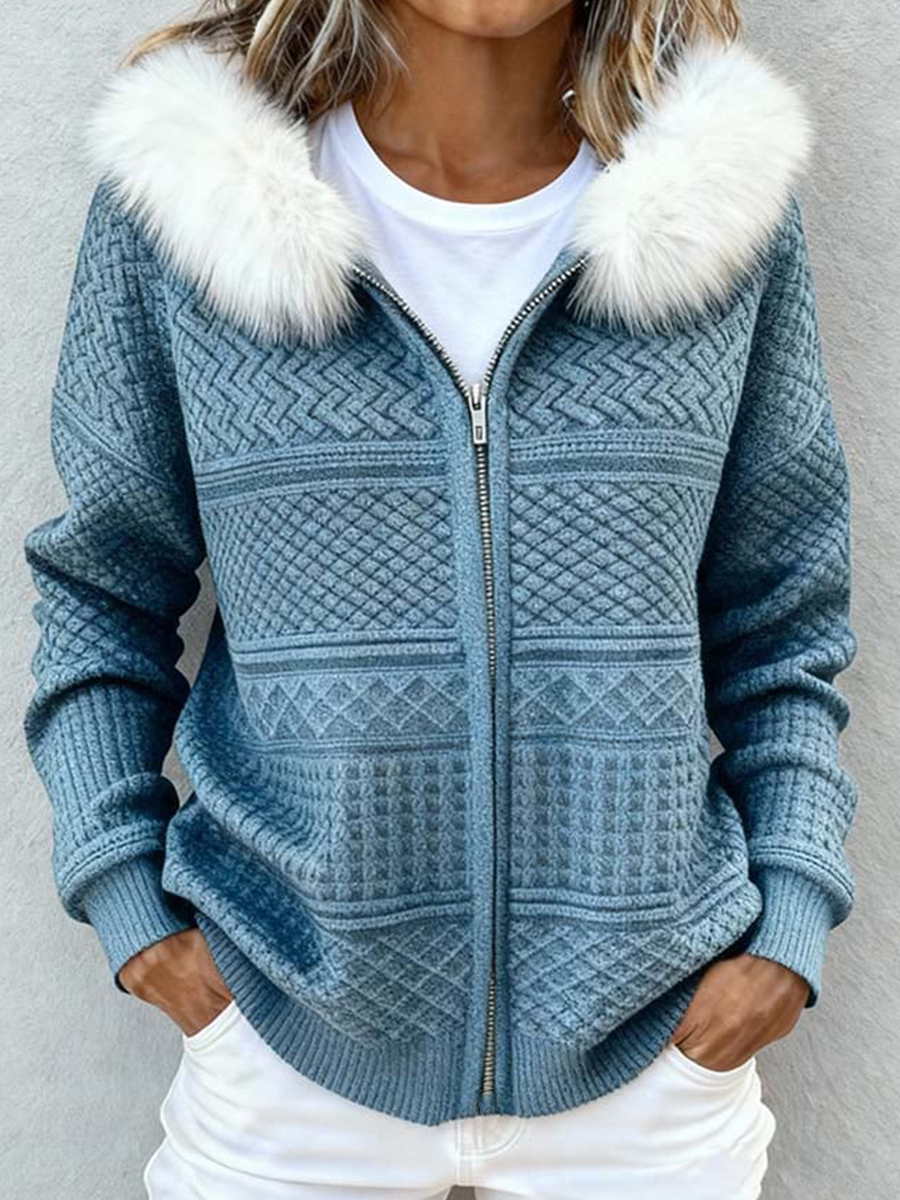 Women's Vintage Geometric Textured Pattern Hooded Cardigan