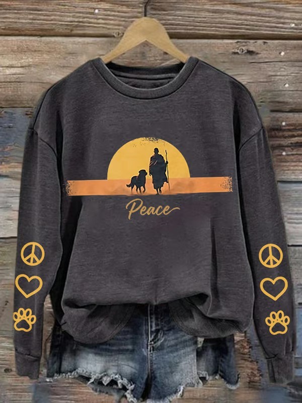 Women's Walk For Peace Monks With Aloka Dog Printed Sweatshirt