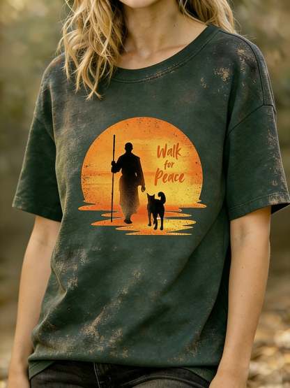 Women's Walk For Peace Monks With Aloka Dog Printed T-shirt