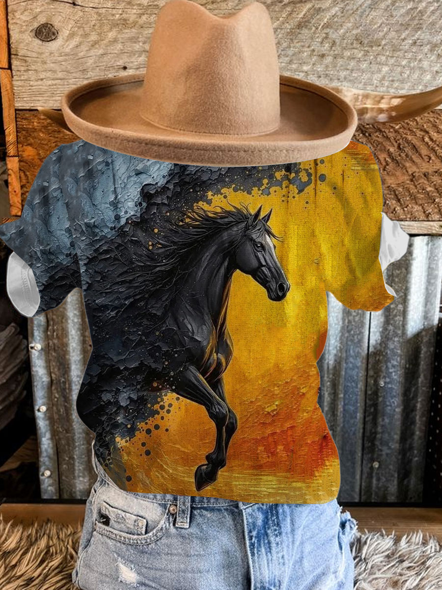 Women's Western Horse Art Print T-Shirt